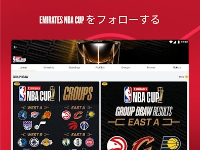 試合結果の配信はもちろんのこと、最新の順位表やニュース、試合の画像、選手名鑑を用意しています。ニュース記事は、基本的にアメリカ現地の英語記事です。試合のハイライト等は、動画で楽しめます。視聴設定を行うことで、NBAに関するアメリカ国内での放送を鑑賞することもできます。スマホの画面を横にしてお楽しみください。