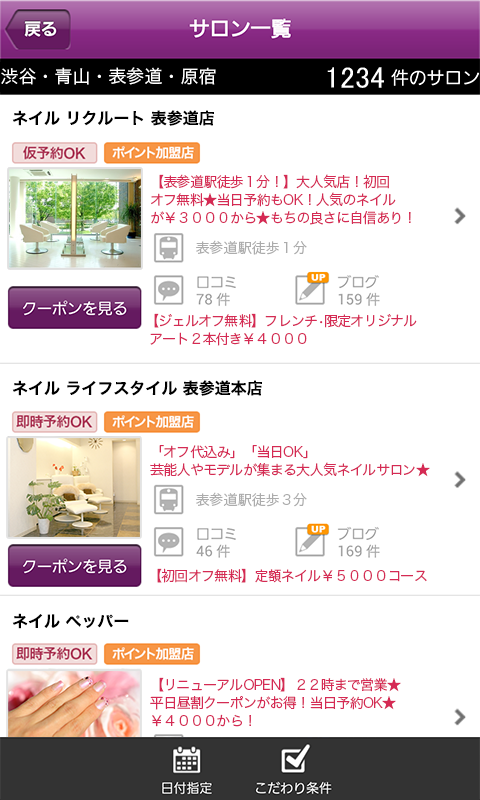 昔はフリーペーパーだったけど、今ならアプリで持ち歩ける!ネイルカタログをパラパラと見ながら、気になったお店へ^^24時間予約受付してくれるから、忙しい人の味方。
