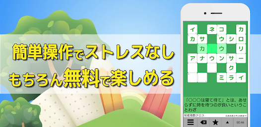 遊びやすさにこだわった簡単クロスワードパズルです。本アプリは1ワードを入れ終わると、次のヒントのマスに自動で移動するようになっています。そのため、わずらわしい操作がかなり減っているんです。ストレスフリーでとても快適なので、どんどん問題を解きたくなってきますよ。