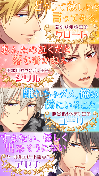 俺様王子、ツンデレ王子、ミステリアスな聖職者等など、王子様をはじめとしたセレブ達は誰も彼もが魅力的なイケメンばかり。皆が貴女を求め、手に入れようと熱いアプローチを仕掛けてきます。