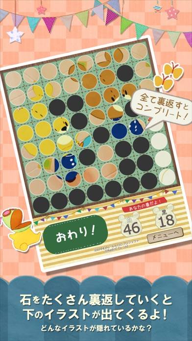 NHKのアニメ「がんばれ!ルルロロ」の公式リバーシアプリです。リバーシにイラスト収集の要素が加わった、ちょっと変わったシステムが特徴。盤の石を白(自分の色)にした部分にのみイラストが表示されるため、盤をすべて白にして、イラストの完成を目指しましょう。小さな子供でも遊べるよう、設定の変更もできます。