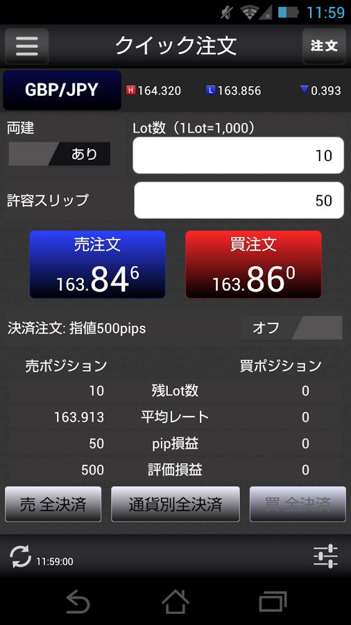 • クイック注文・決済注文など、本物と変わらない取引を体験できる