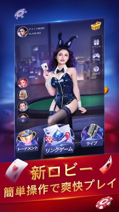 手軽に本格ポーカーを楽しめるゲームです。対戦相手は他のプレイヤーなので手に汗握る勝負が楽しめます。チップを賭けて勝負するので、ちょっとしたカジノ気分も味わうことができます。