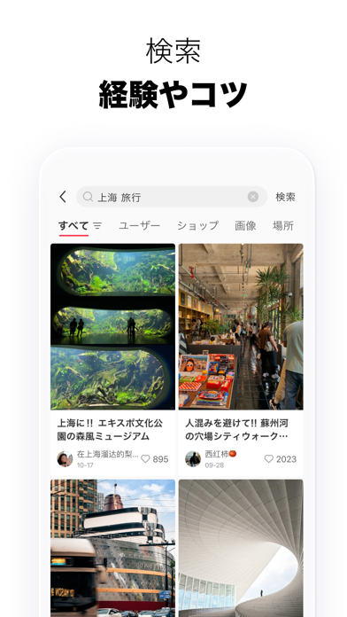 ユーザーとの交流を楽しめる、中国のSNSサービスです。若年層の女性ユーザーが多く、ファッションや化粧品、グルメなど、幅広いカテゴリの投稿をチェックできます。単純にコミュニケーションを楽しめるだけでなく、ショッピング機能がついているのも特徴。