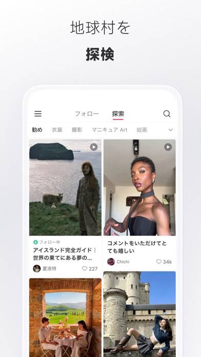 ユーザーがアップロードした写真や動画をチェックできます。ファッションや化粧品、旅行、グルメなど幅広いカテゴリから選択可能。『Instagram』のような感覚で、「いいね」をしたり、コメントを投稿したりしてみましょう。