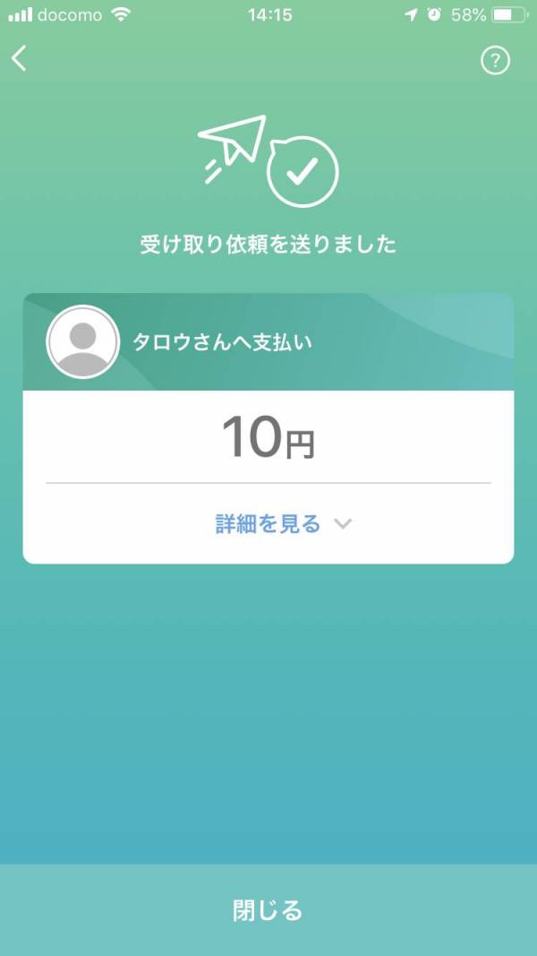▲相手が送金手続を完了すると、受け取り手にはこのような通知が届く。