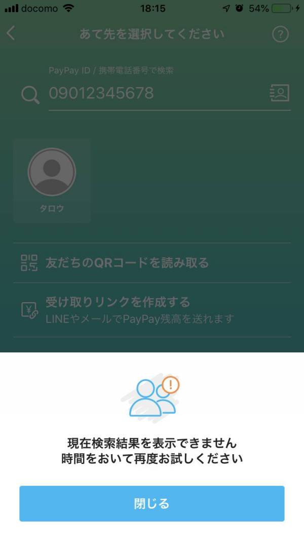 電話番号から送金する場合、もし相手が検索拒否の設定をしていると送れません。