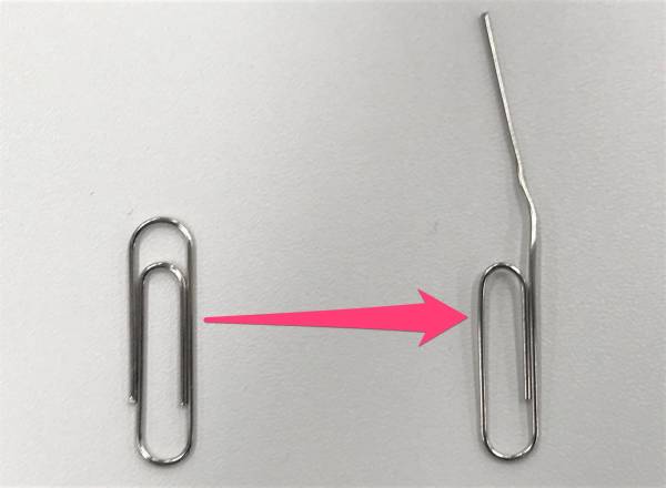 ここでは、書類をまとめるためのペーパークリップを用いたSIMカードの取り出し方を紹介していきます。