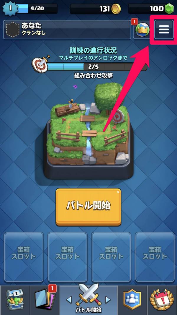 1.メニューの「バトル開始」画面右上の三本線(≡)をタップ
