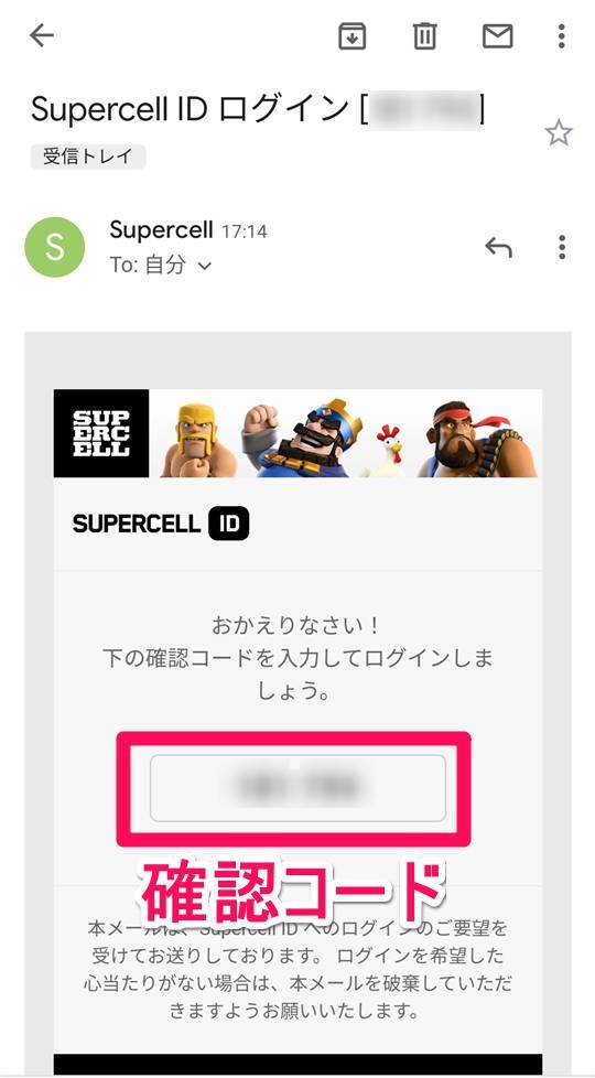 7.Supercellからメールが届くので「確認コード」を確認
