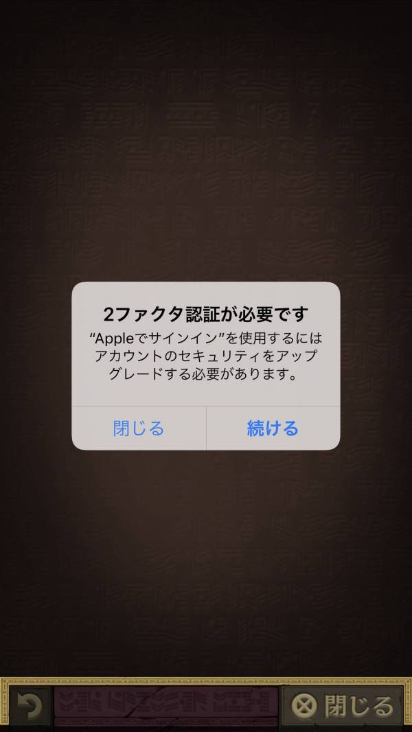 ▲2ファクタ認証を設定せずにApple IDと連携しようとすると、2ファクタ認証の誘導メッセージが表示される。