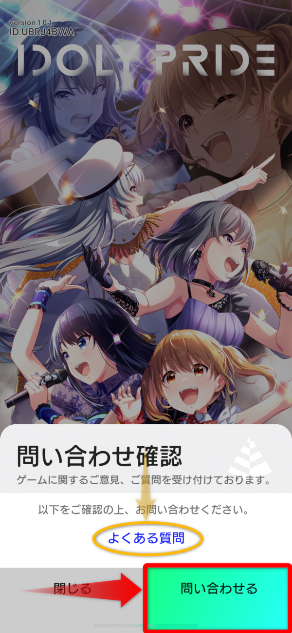 全部確認して、どうしても解決しなければ赤色・「問い合わせる」をタップして進みましょう。