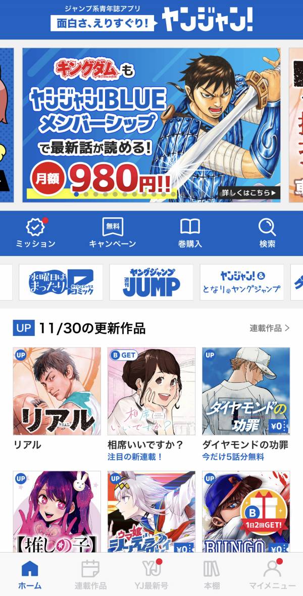 『ヤンジャン!』は週刊ヤングジャンプ・ウルトラジャンプ・グランドジャンプ・となりのヤングジャンプ・ダッシュエックスコミックなどの、ジャンプ系青年誌の作品が読める漫画アプリです。最新号でも単話で購入できるため、新作をすぐに読むことができます。
