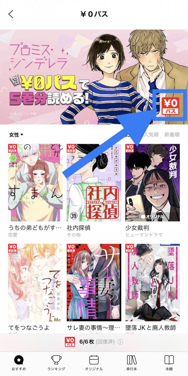 さらに本作は、「¥0パス」の対象作品なので、1日最大12話読むことが可能。「¥0パス」は2時間ごとに1枚回復し、一度に最大6枚まで保有できます。