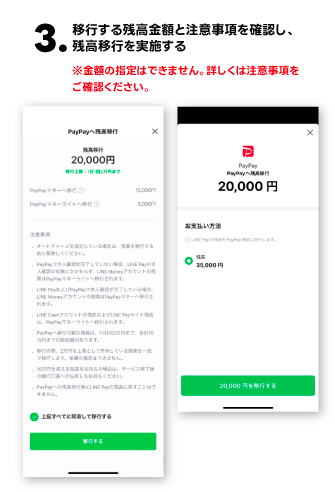 ・「PayPay」への残高移行後は「LINE Payの残高」に戻すことはできない