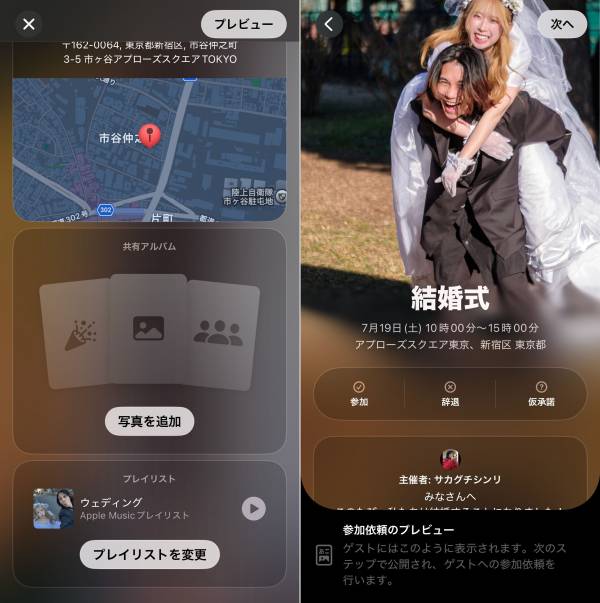 筆者は2025年の夏に結婚式を予定しているため、実際に『Apple インビテーション』を使った招待状作成を行ってみました。