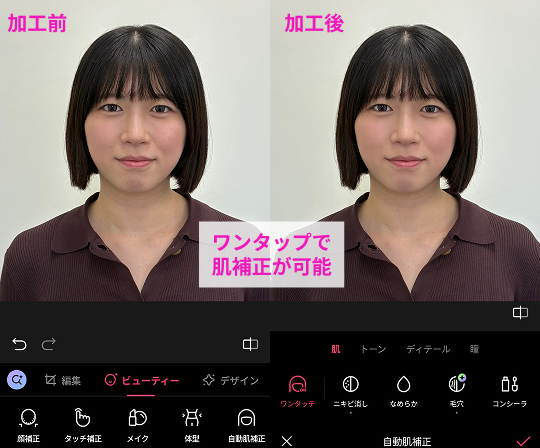 ナチュラルな仕上がりを意識し、写真加工アプリの修正機能を過剰に使いすぎないことがポイントです。