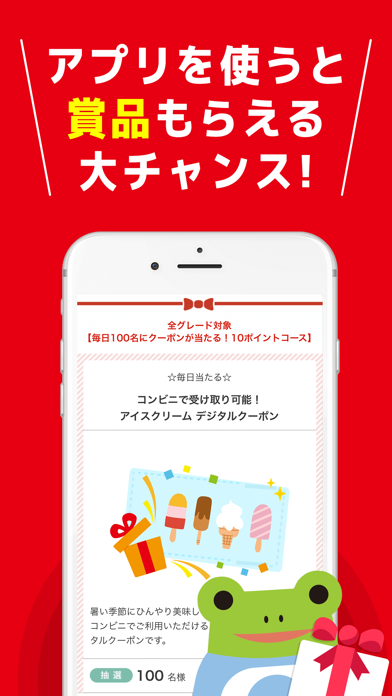 | ポイント獲得方法 | チラシ閲覧、ログイン、会員グレードアップ、お知らせ通知をON、ケロみくじを引くなど |