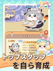 店員ハムスター「ハム材」を研修して、収益の効率をアップ。ハム材のレベルを上げると、会計スピードや収益も上がります。また、ハム材によってスタッフスキルもバラバラ。決まった店で働いたときに収益が上がるなど、得意な店があるハム材もいます。