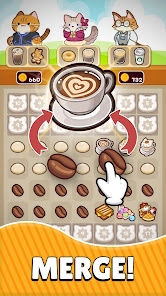 コーヒー豆やパンの生地を組み合わせて商品を作り、お客さんにふるまうカフェ運営ゲームです。猫のマネージャーたちががんばって働いてくれる様子に心がホッと癒やされます。のんびりマージパズルをしながら、おしゃれでかわいいお店を作り上げていけますよ。