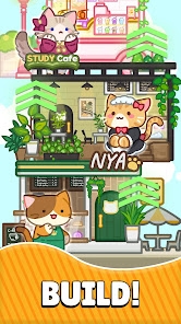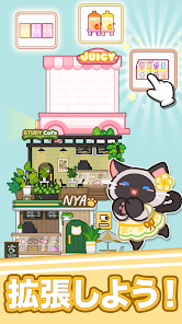 メイド姿の猫や博士風の格好をした猫など、いろいろな見た目の猫たちが登場。それぞれの猫が接客をしたりお客様として訪れたりする様子がかわいらしく、眺めているだけで気持ちがほぐれます。猫たちは条件を満たすと増えていき、ときどきおしゃべりもしてくれますよ。