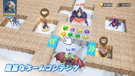 ストーリーは戦略ストラテジーの形で進行します。氷に閉ざされた世界をヒーローたちを駆使して地道に開拓をしつつ、要所ではバトルに挑戦。はじめは小粒だったヒーローたちが、ゆくゆくは大軍勢へ……目を見張るほどの成長感が待っています。
