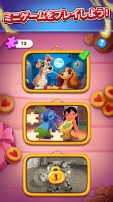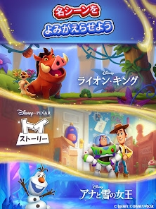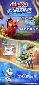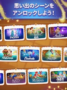 75種類以上のディズニー&ピクサーのキャラ、22種類以上のシーンを収録。ソリティアをクリアして手に入る星を使い、『アナと雪の女王』や『トイ・ストーリー』などの名シーンを完成させるとキャラたちが動く数秒のアニメーションを視聴できます。