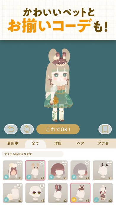 ガチャで手に入る服や背景で、島を華やかに