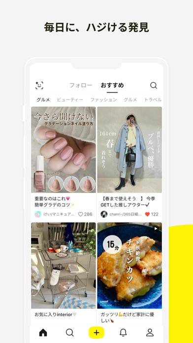 レシピ・ファッション・コスメなど、自分が見たいカテゴリで話題になっている投稿が表示されます。自分で探さなくても、興味のあるテーマが自然に集まってくるのがポイント。最新のバズってるものや、今みんなが注目している商品など、トレンドを早く知りたい人にぴったりのアプリです。