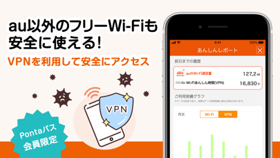 高セキュリティの認証方式により、悪意のあるアクセスポイントへの接続をブロック。「フリーWi-Fiは危険だから使いたくない」という心配から解放され、外出先でも安心してネット利用できます。Pontaパス会員なら、さらにVPN機能で他のフリーWi-Fiも暗号化通信可能。