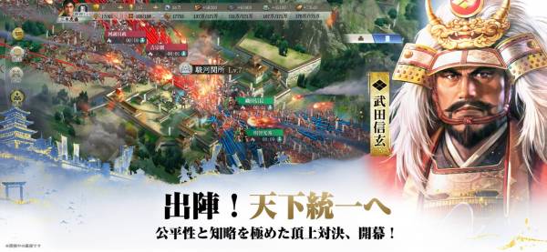 メインコンテンツは、リアルタイムで進行する戦国時代のシミュレーションバトル。プレイヤーは自身の城を拠点に、周囲の拠点を制圧しながら領土を広げていきます。