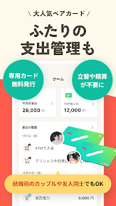 支払いと家計簿管理ができるVisaプリペイド方式の家計管理アプリです。アプリから入金し、カードで支払うだけで支出を自動記録。カテゴリ別の予算設定や、レポートによる振り返りもスムーズに行えます。カップルや夫婦と一緒に使える「共有家計簿」や、後払いができる「あとばらいチャージ」にも対応し、ライフスタイルに合わせた使い方が可能です。無理なく続けられる仕組みがそろっているため、家計管理を負担なく始めたい人にもおすすめ。