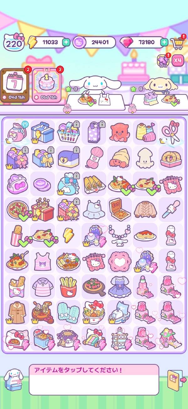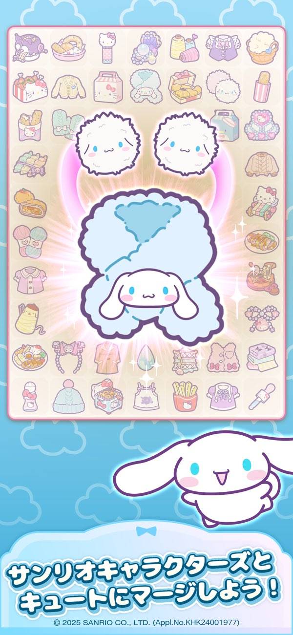同じアイテム2つを合成し、毛糸やシャツなど新しいアイテムを作るパズル。注文されたアイテムをそろえればミッションが進行し、ショップも発展します。毛糸玉はシナモン、絹糸はポチャッコなど、キャラクター風のアイテムデザインがまたキュート!