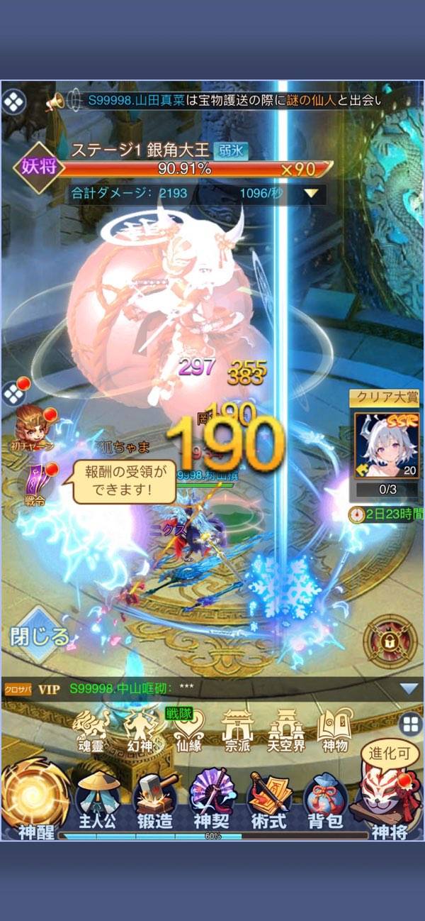 とりあえず放置で経験値稼ぎをすると考えてOK。神界と思しき世界で、主人公と神将が派手な戦いを繰り広げます。放置で負けることはないため安心。ほかにも育成やレイドボスといった要素がありますが、ガイドに従えばゲームが進行するようになっています。