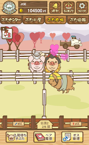 豚をタップすると満足度や好物、体調などが見られます。定期的に様子を見てあげないと病気になってしまうことも……。放置しすぎず、かといって構いすぎず、繊細な管理が大切です。手間暇かけた分だけ、良いお肉になってくれるでしょう。