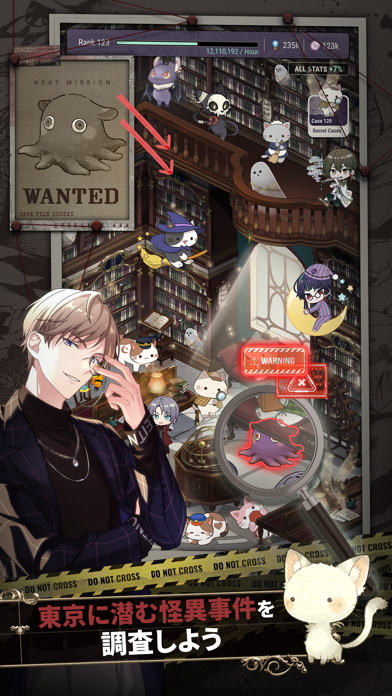 物語を読み進めるには「怪異事件」と呼ばれるバトルをクリアする必要があります。学園施設の建設を通じてグールたちを育成し、バトルに挑む流れ。建設では猫も大活躍。猫の手を借りながら、たくさんの怪異事件を解決していきましょう。