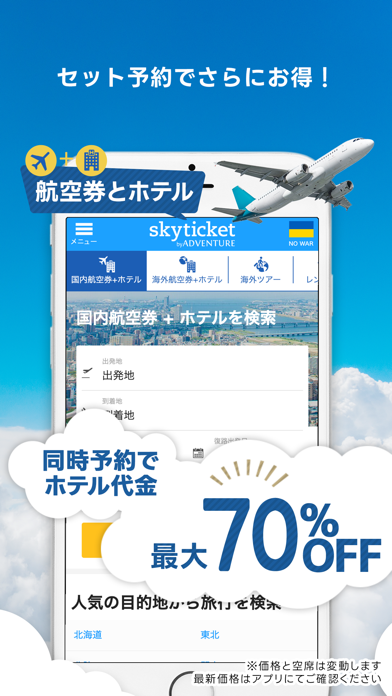 - 航空券とホテルを一度に予約すれば、ホテル代が割引に