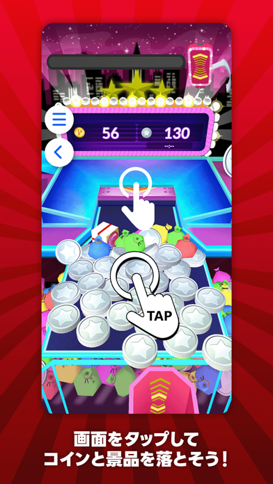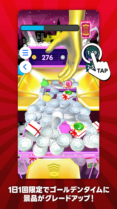 メダルの中に1~10円分のPayPayポイント獲得のチャンス。「Pay\〇〇」と書かれたプレゼントボックスを手前に落とすと抽選に参加でき、その場で当たりはずれがわかります。