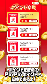 運要素が強く、広告も高い頻度で挟まれますが、ゲーム感覚でポイ活したい人にはいいアプリでしょう。