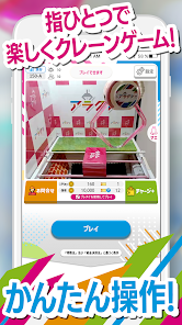 クレーンゲームをオンラインで24時間いつでも楽しめるアプリ。1プレイ100APからとなっており、GETした景品は1週間程度で指定した住所に配送料無料で届きます。アプリ独自の景品も多数あり、台を選ぶのも楽しいでしょう。ほかの人のプレイも見られるので、参考にしながら景品をGETしてみてください。