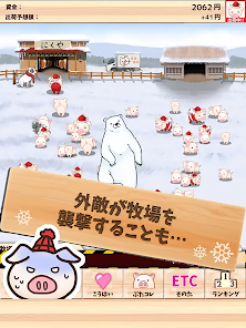 豚の牧場を経営する放置タップゲーム。とくに変わったシステムは無く、類似ゲームで遊んだことがある人なら戸惑わずに遊べるでしょう。