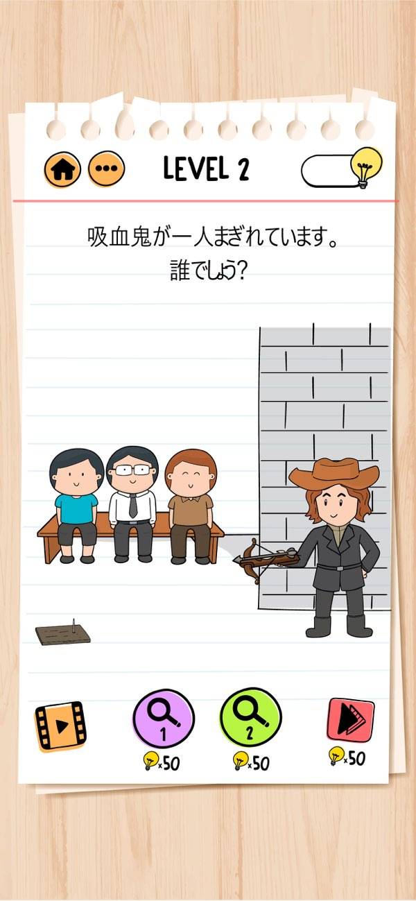 ひっかけパズルで人気の『Brain Test(ブレインテスト)』に2が登場。イラストとともに出されるお題に沿って、答えを導いていくゲームです。