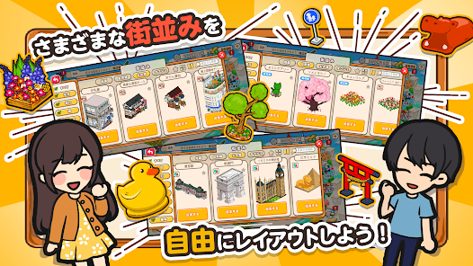 お店を設置していけば、経営は自動。どんどん資金が増えていくので新しいお店や街灯、オブジェなどを置いて商店街をにぎやかにしていきましょう。自由なレイアウトを楽しんで理想の商店街を作り上げていってください。