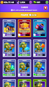 採掘中にはカードが手に入り、よりコインを効率よく稼ぐ効果を発揮します。同じカードを一定数集めてレベルアップさせると、トロッコなどの対応するコイン生産設備を自動化できるようになります。ゲームをラクに進めるのに貢献してくれるでしょう。