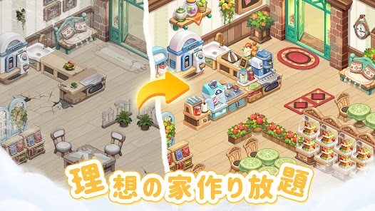 スイーツショップの経営を楽しむシミュレーションゲーム。原材料の栽培や加工、販売など、経営全般に関わりながらお店のレベルアップを目指します。レベルが上がってお客様が増えると、インテリアや衣装を変更できるようになり、自分好みのカスタムを楽しめます。ほとんどのミッションが数タップで完了する手軽さも魅力。