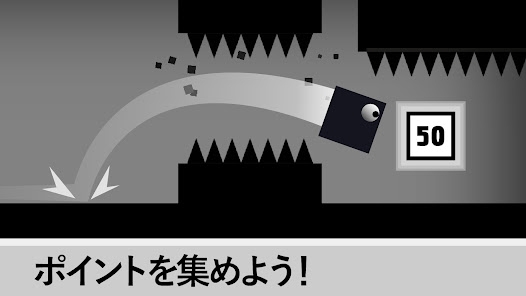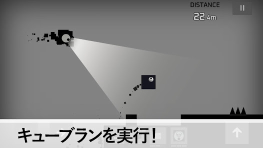 黒い箱のスキューブを操作して敵と障害物を避ける横スクロールアクション。敵などに触れずにどれだけの距離を進めるかを競うエンドレスラン形式です。距離のハイスコアを世界中のプレイヤーとランキングもあり、ゲームにも熱が入ります。また、挑戦するたびにステージの構造も変わるため、上級者でも遊び応え抜群です。