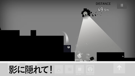 敵や障害物を移動やジャンプで避けながら進みます。中でも、サーチライトで照らしながら宙を漂う敵には要注意。壁にぴったりと張りつき同化してしのぎましょう。操作方法はスワイプとボタンの両方に対応しているため、ストレスなく操作できます。