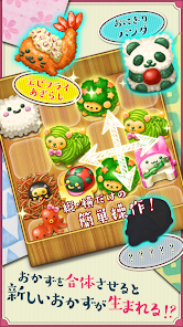 2048パズルのルールでお弁当を作っていきます。画面をスライドして同じおかず同士をくっつけて、違うおかずに変身! ごはんがブロッコリーに、ブロッコリーがたまごにと、かわいいおかずに変化していく様子がおもしろいです。