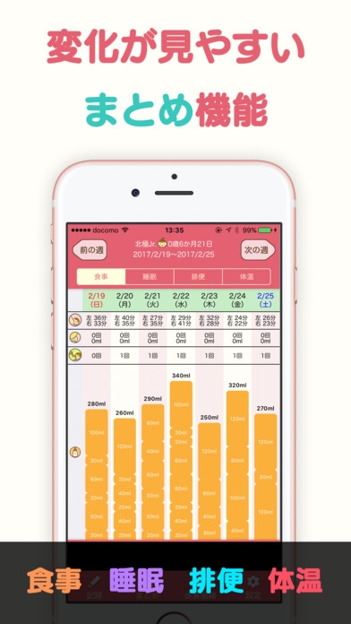 ぴよログアプリ内の「生後3ヶ月の記録のまとめ」表示ページ