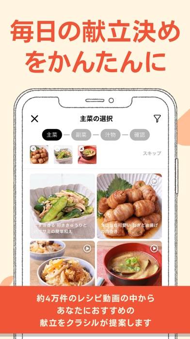 動画で料理の手順を紹介してくれるレシピアプリです。切り方や煮込み具合、焼き色が動画でわかるため、初めて作る料理でも失敗しにくいのが魅力。アプリ内で献立も作れるため、毎日の食事の助けになってくれます。